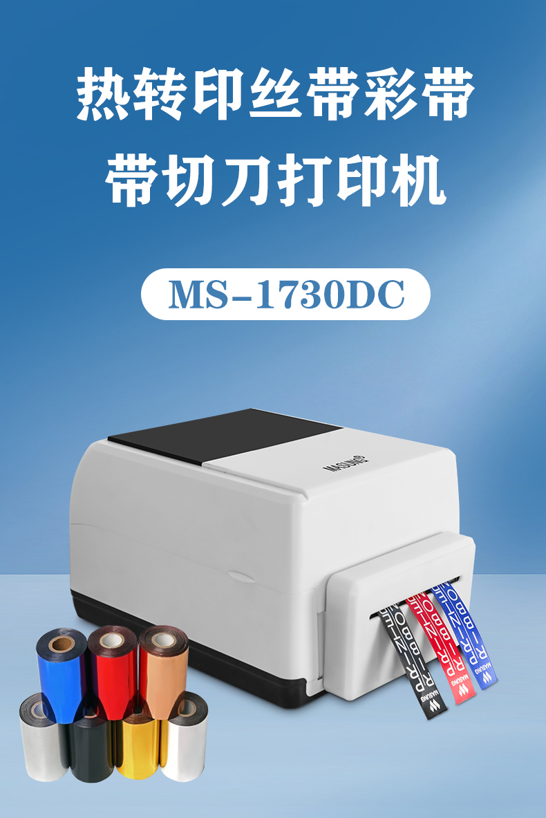 MS-1730DC_桌面式絲帶打印機是由美松自主研發的一款絲帶彩帶飄帶打印機,MS-1730DC的絲帶寬度為最小25mm,最大寬度為118mm,可適用的絲帶彩帶范圍廣泛,應用于禮物包裝絲帶,節日活動絲帶等領域,MS-1730DC帶有自動切刀,可進行彩帶和絲帶的快速切割,切刀更快且無殘留